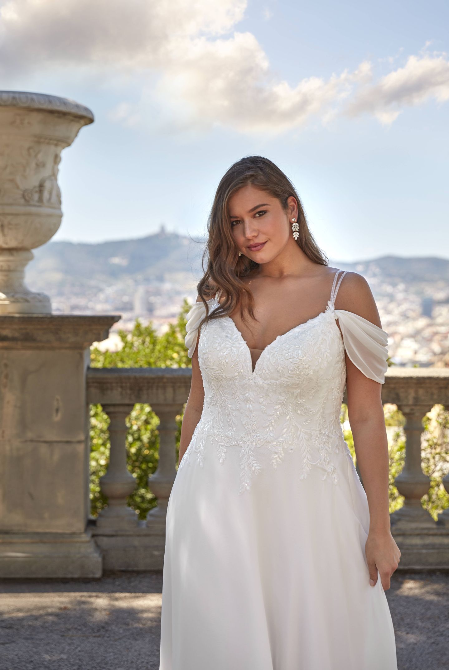 Verspieltes Curvy Brautkleid aus Chiffon mit Tüll